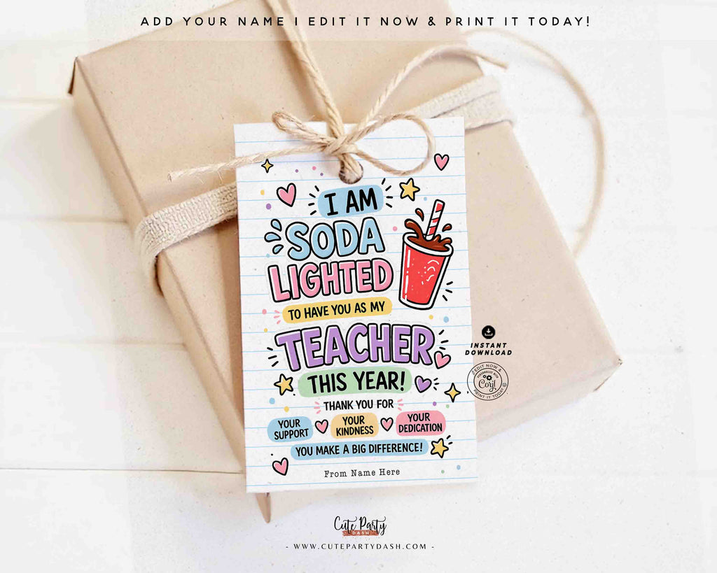 Teacher Appreciation Soda Gift Tag Printable – Funny Thank You Teacher Tag – Editable Name Instant Download