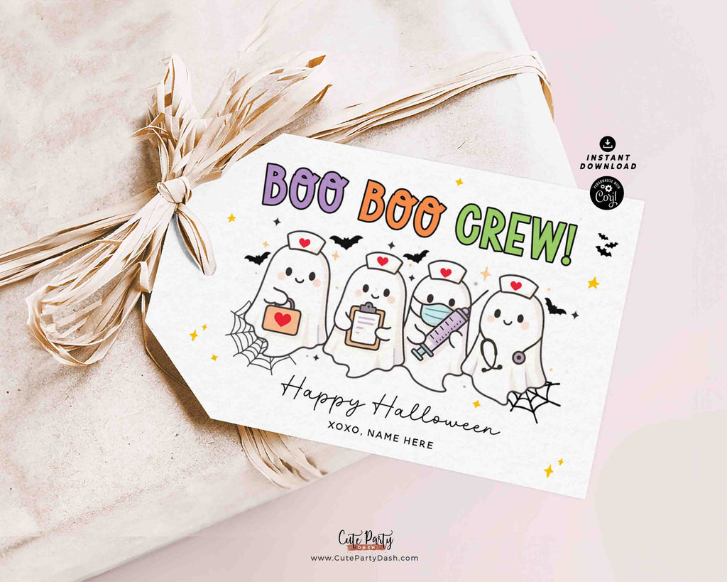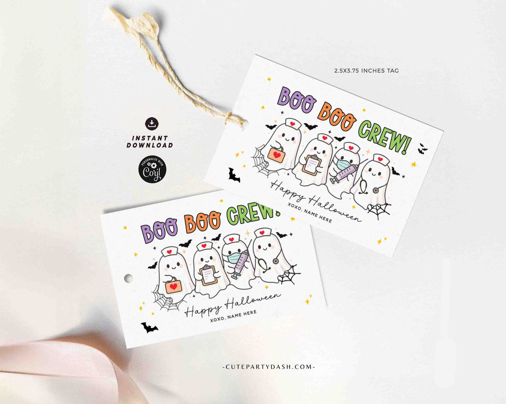 Editable Nurse Halloween Gift Tag Template INSTANT DOWNLOAD Happy Halloween Gift for Nurses: Boo Boo Crew Pun Tag