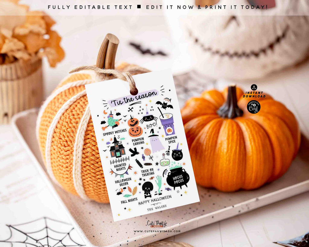 Editable ’Tis the Season Halloween Gift Tag Template INSTANT DOWNLOAD Happy Halloween for Trick or Treat, Halloween Classroom Party