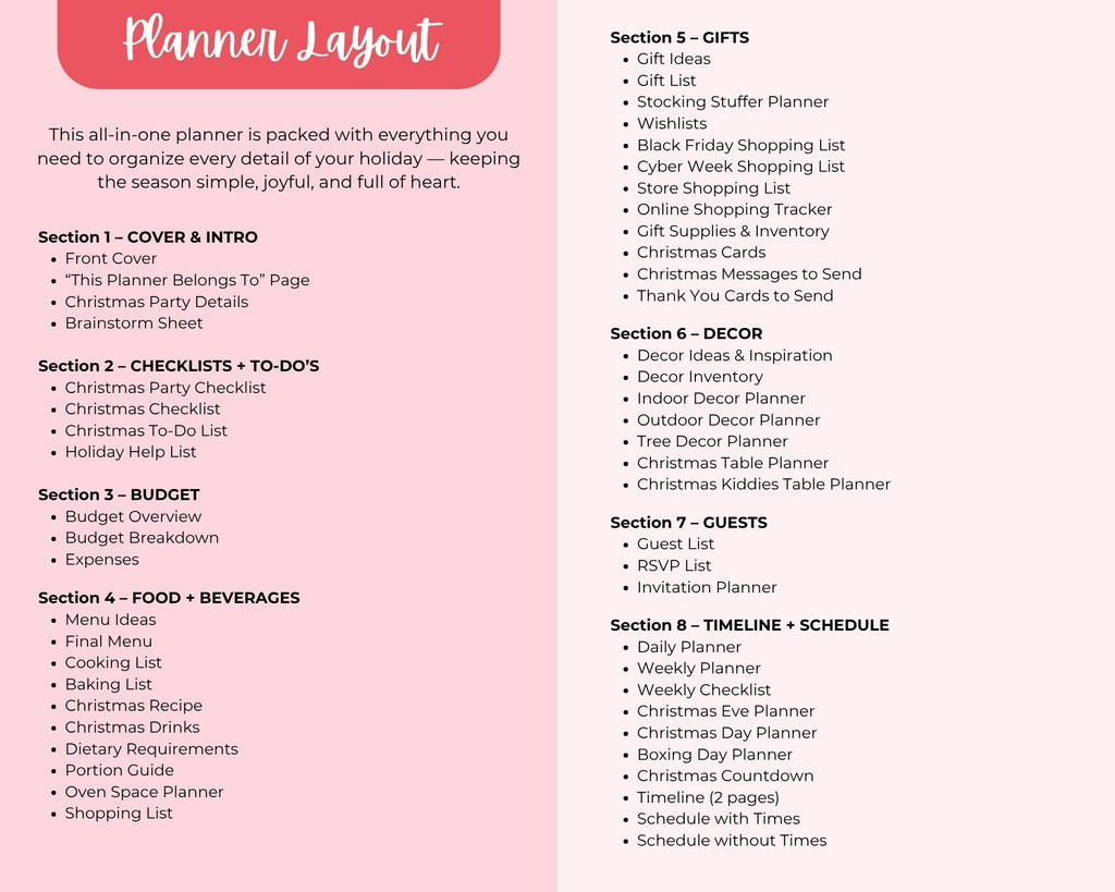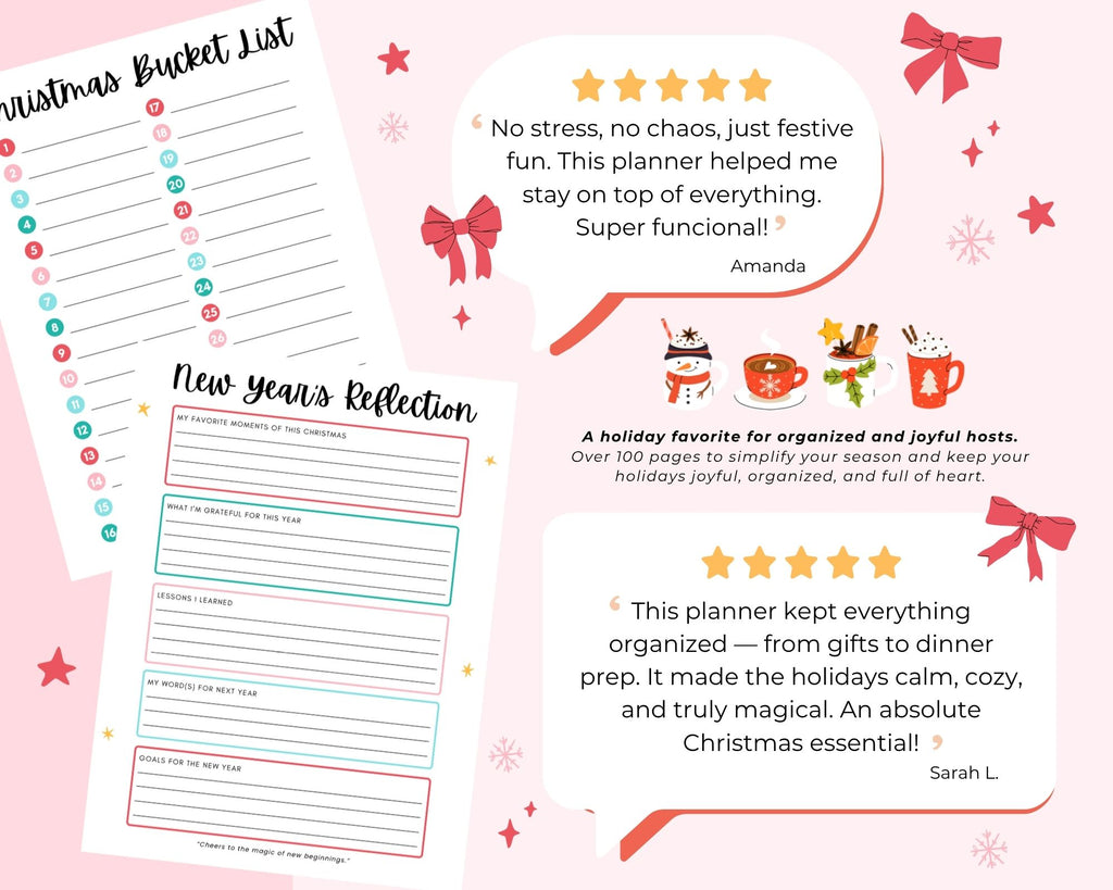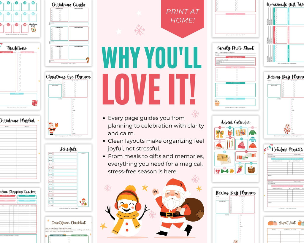 This Ultimate Christmas Planner for Busy Hosts includes everything you need to organize every detail of your holidays — from gifts and menus to décor, crafts, games, and reflections. Designed in a cheerful pastel Christmas palette, it helps you stay organized while keeping the season full of warmth, meaning, and magic.